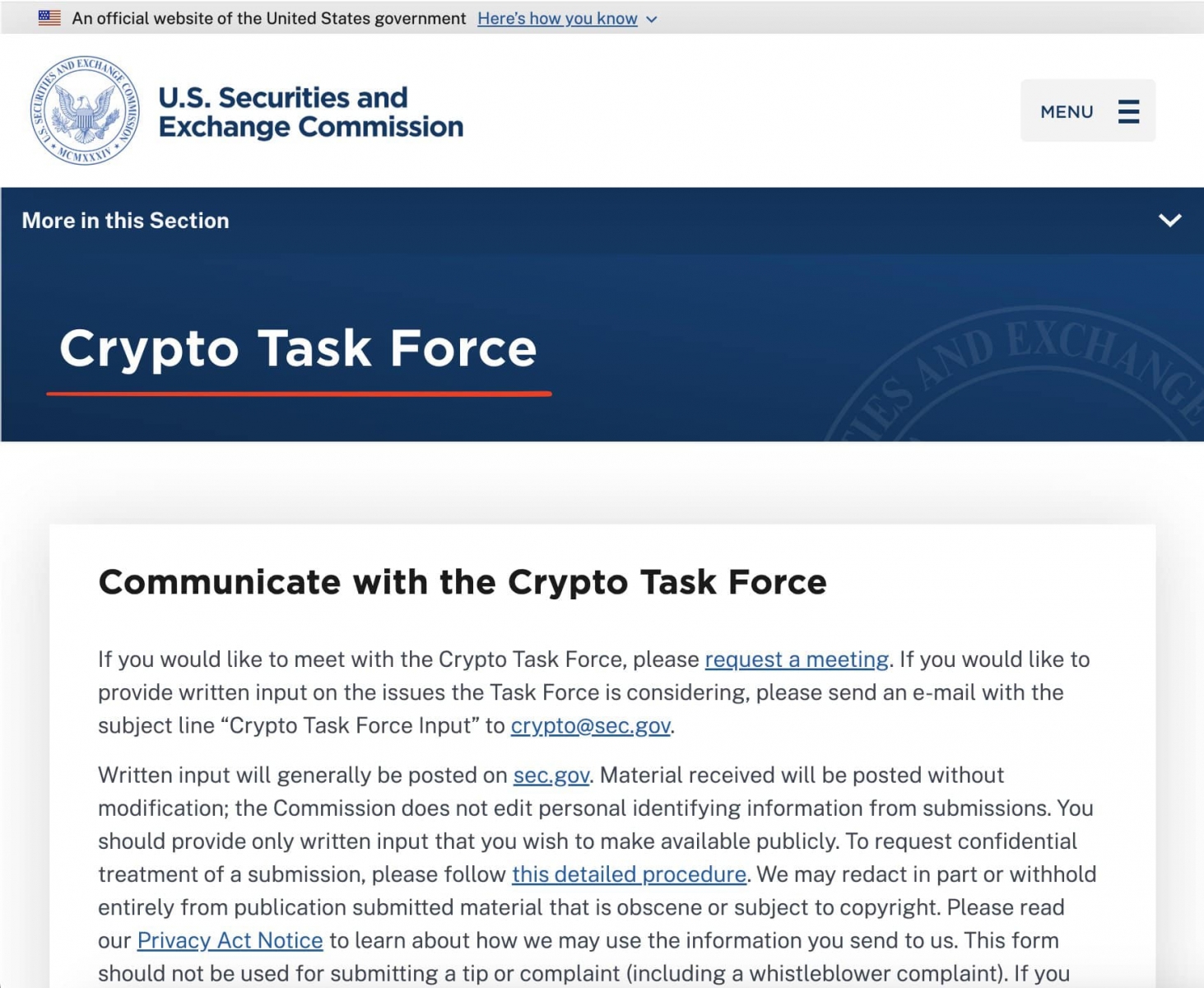 SEC Hoa Kỳ đã chính thức thông báo điều chỉnh cách tiếp cận thực thi đối với ngành crypto. Đồng thời, họ cũng đã cho ra mắt trang web CRYPTO TASK FORCE.