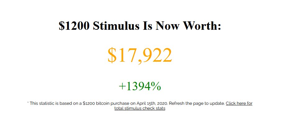 Các bạn còn nhớ khoản tiền hỗ trợ người dân Hoa Kỳ trong đại dịch covid-19, 1,200 USD mỗi người? Nếu bạn mua BTC vào thời điểm đó, thì hiện tại số tiền đó đã thành 17,922 USD (+1394%). BTC tăng giá… hay có thể hiểu là đồng USD mất giá.