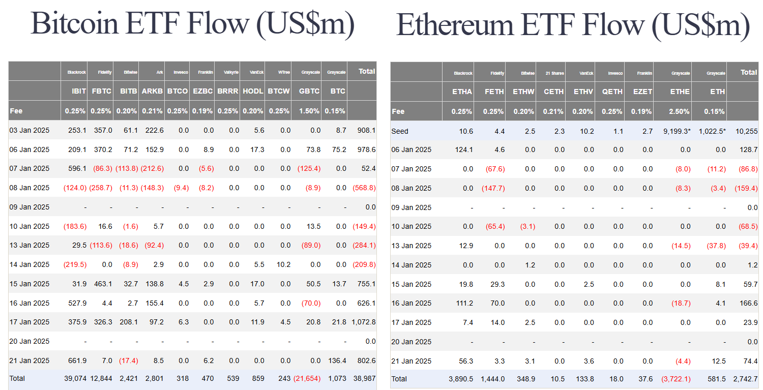 Các quỹ BTC spot ETF có dòng tiền vào dương lớn lên đến 802 triệu USD. Chủ yếu dòng tiền vào IBIT của BlackRock và BTC của Grayscale. Các quỹ ETH ETF.